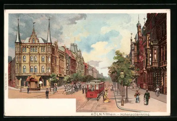 Lithographie Köln-Neustadt, Hohenzollernring, Strassenbahn
