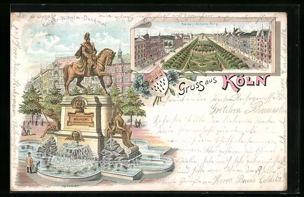 Lithographie Köln-Neustadt, Kaiser-Wilhelm-Ring, Kaiser-Wilhelm-Denkmal