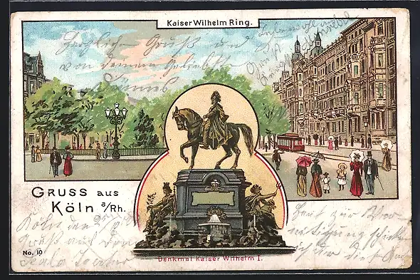 Lithographie Köln-Neustadt, Kaiser Wilhelm Ring, Kaiser Wilhelm Denkmal