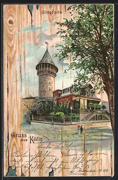 Lithographie Köln-Neustadt, Partie an der Ulrepforte, Holzimitat