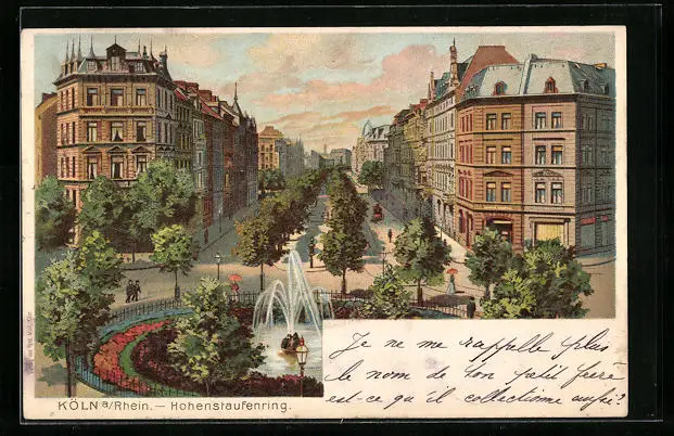 Lithographie Köln-Neustadt, Partie vom Hohenstaufenring