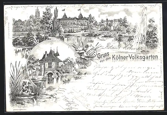 Lithographie Köln-Neustadt, Restaurant und Teich im Volksgarten