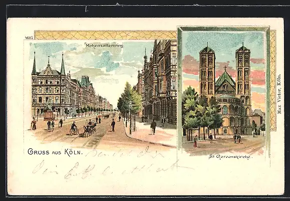 Lithographie Köln-Neustadt, St. Gereonskirche und Hohenzollernring