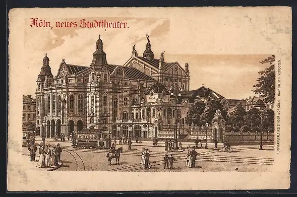 Lithographie Köln-Neustadt, Strassenbahn am neuen Stadttheater