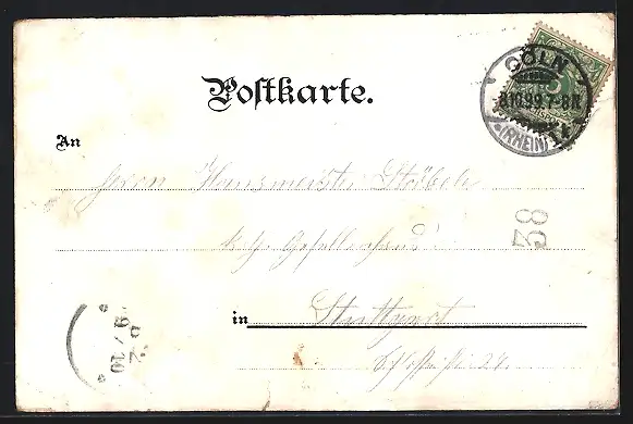 gelaufen 1899, Eckknicke unten, guter Zustand