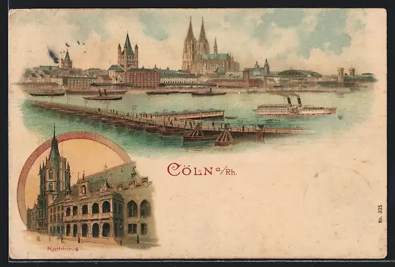 Lithographie Köln, Rheinbrücke mit Dom