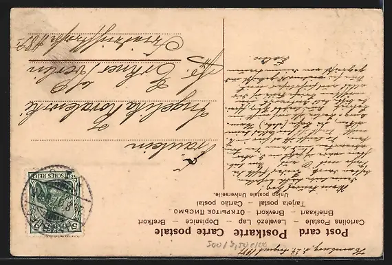 gelaufen 1907, Eckknick li. oben, minimale Einrisse li. oben, Stempelspur, guter Zustand