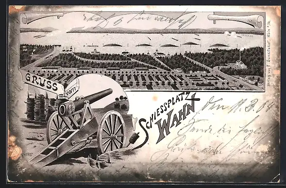 Lithographie Köln-Wahn, Schiessplatz, Kanone