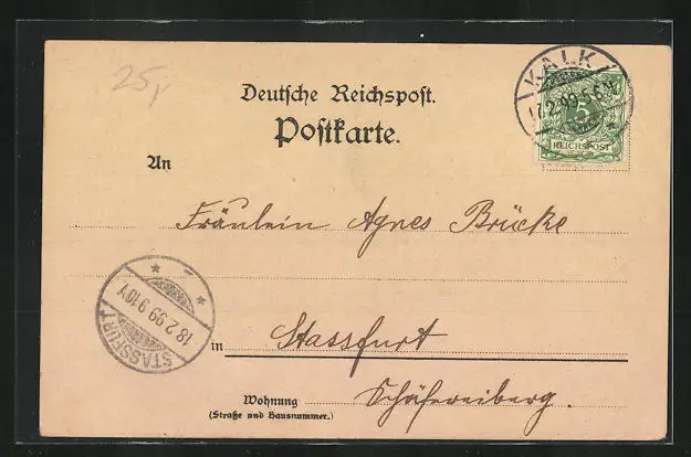 gelaufen 1899, Eckknick li. oben, guter Zustand
