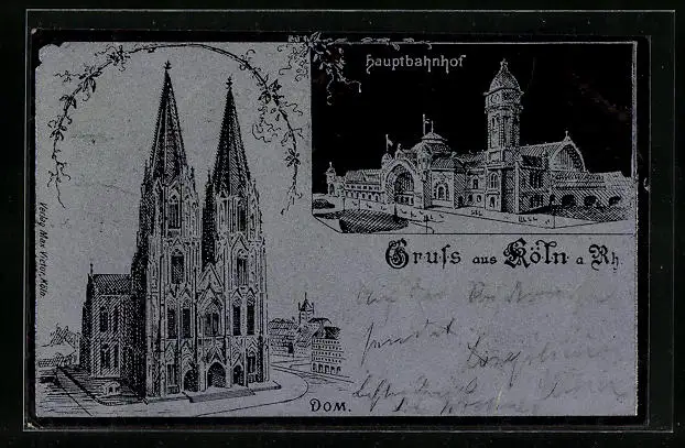 Lithographie Köln a. Rh., Dom, Hauptbahnhof