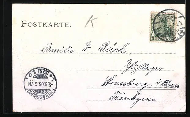 gelaufen 1906, Eckknicke unten, Stempelspur, guter Zustand