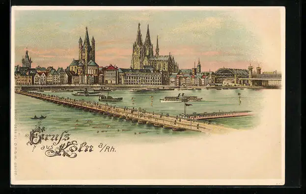 Lithographie Köln a. Rh., Ortsansicht mit Steg