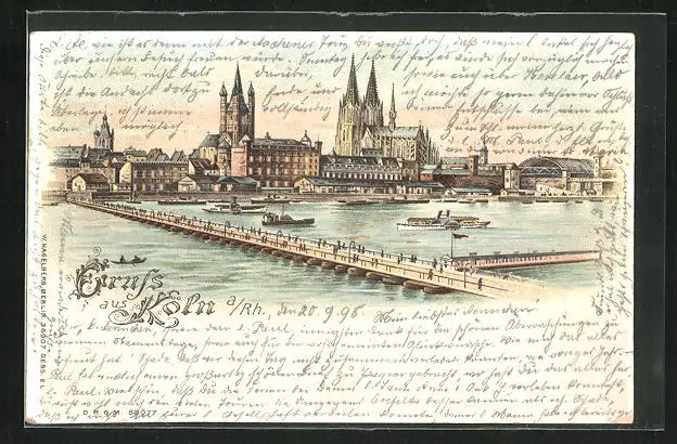 Lithographie Köln a /Rh., Teilansicht mit Dom