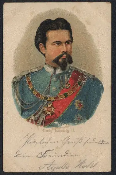 Lithographie König Ludwig II. in festlicher Uniform