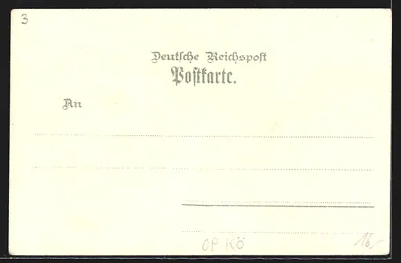 Personenbezogene Daten auf der Rückseite der Karte wurden durch blauen Textmarker unkenntlich gemacht. Die blauen Stellen sind auf die Vorderseite durchgeweicht und wirken sich negativ auf das Postkartenfoto aus
