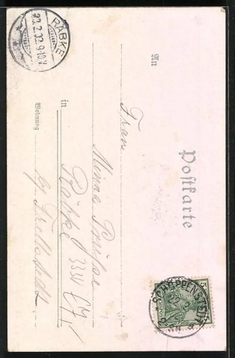 gelaufen 1902, Eckknick oben li., Stempelspur, guter Zustand