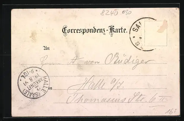 gelaufen 1891, Briefmarke entfernt, rückseitig Oberflächenschaden, Eckknick li. oben, guter Zustand