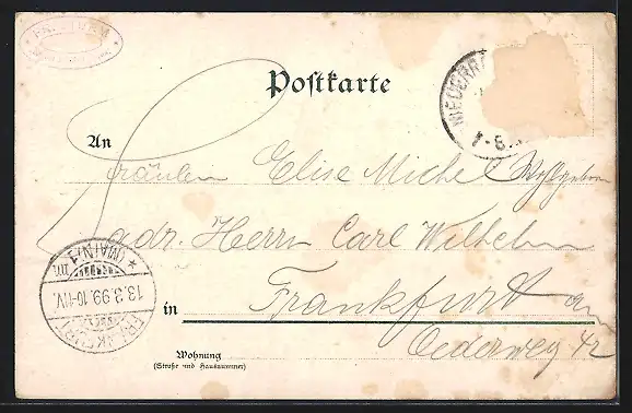 gelaufen 1899, Briefmarke entfernt, rückseitig Oberflächenschaden, guter Zustand