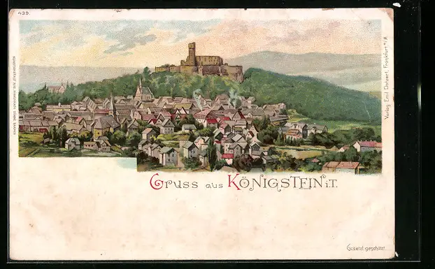 Lithographie Königstein i. T., Teilansicht mit Burg