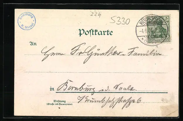 gelaufen 1906, Eckknick unten li., guter Zustand
