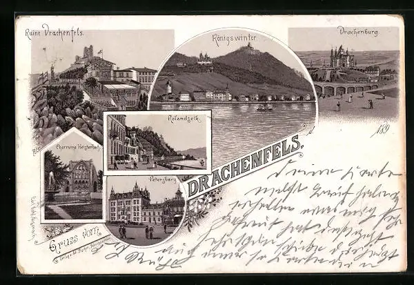 Lithographie Königswinter, Ruine Drachenfels, Drachenburg, Rolandseck