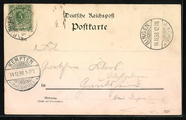 gelaufen 1898, Eckknick re. unten, guter Zustand