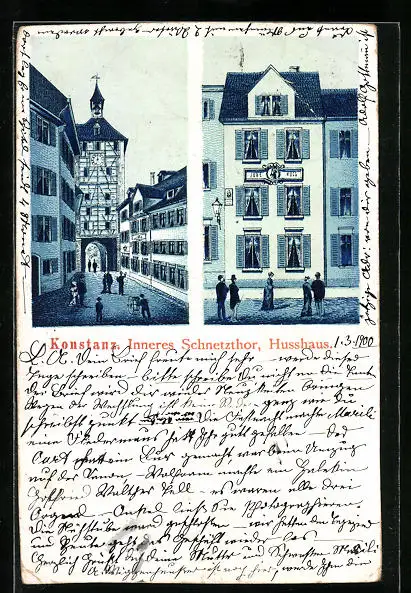 Lithographie Konstanz, Inneres Schnetzthor, Husshaus