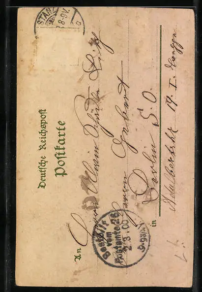 gelaufen 1900, Briefmarke entfernt, Bugspur oben re., guter Zustand