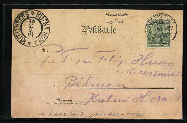 gelaufen 1901, Bugspuren oben li., guter Zustand