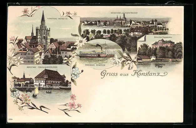 Lithographie Konstanz, Münster, Schloss Mainau, Conciliumsgebäude