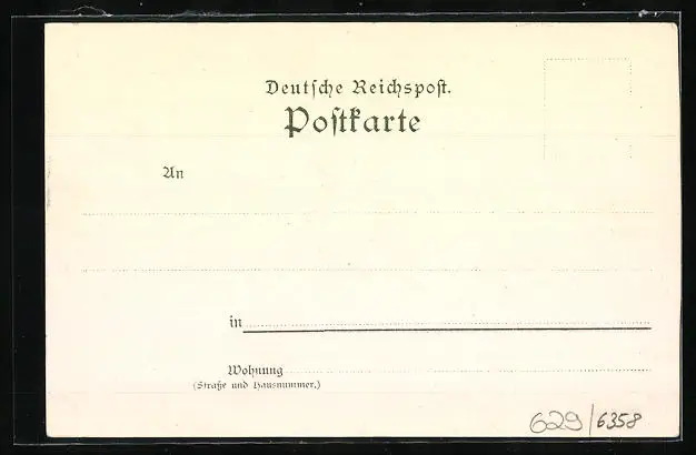 Personenbezogene Daten auf der Rückseite der Karte wurden durch blauen Textmarker unkenntlich gemacht. Die blauen Stellen sind auf die Vorderseite durchgeweicht und wirken sich negativ auf das Postkartenfoto aus