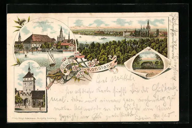 Lithographie Konstanz, Totalansicht, Conciliumsgebäude