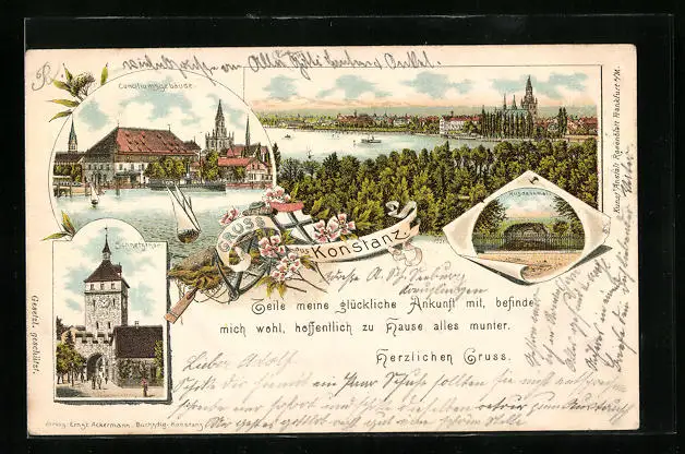 Lithographie Konstanz, Totalansicht mit Conciliumsgebäude