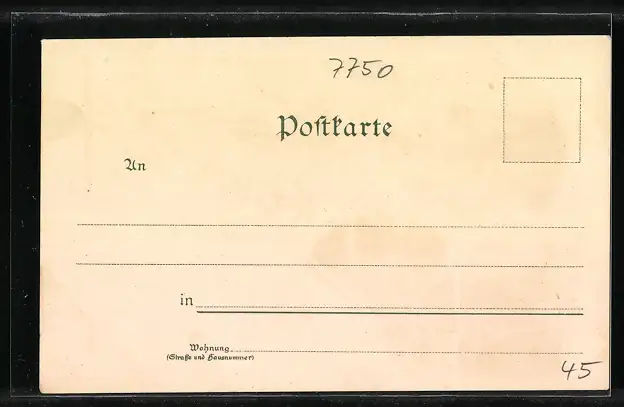 Personenbezogene Daten auf der Rückseite der Karte wurden durch blauen Textmarker unkenntlich gemacht. Die blauen Stellen sind auf die Vorderseite durchgeweicht und wirken sich negativ auf das Postkartenfoto aus