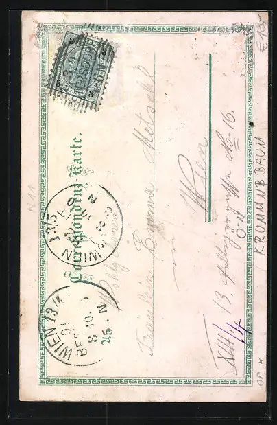 gelaufen 1900, rückseitig Oberflächenschaden, Bugspur li. unten u. mittig, Oberflächenschaden, guter Zustand