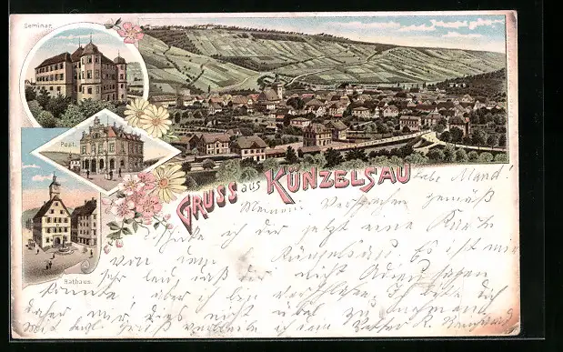 Lithographie Künzelsau, Seminar, Post, Rathaus