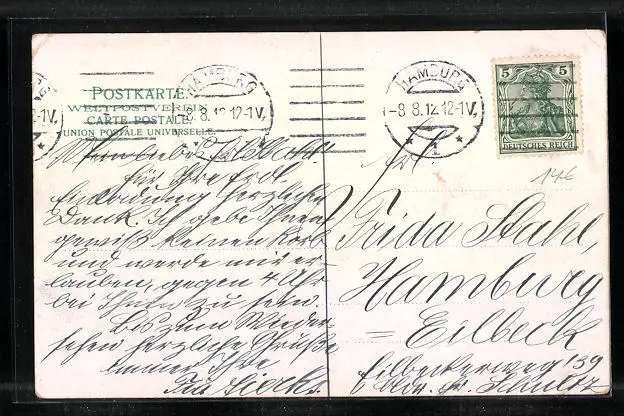 gelaufen 1912, Eckknicke oben, guter Zustand