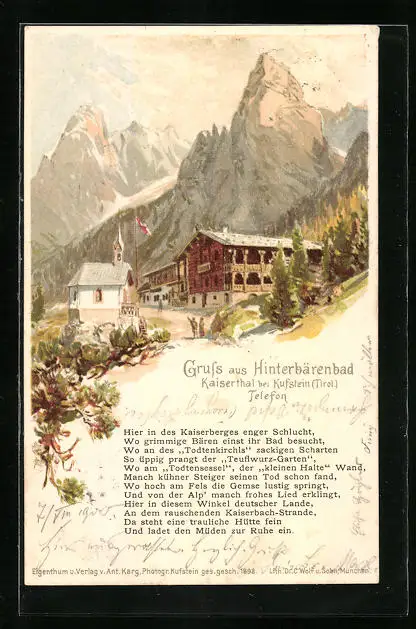 Lithographie Kufstein, Unterkunftshütte Hinterbärenbad