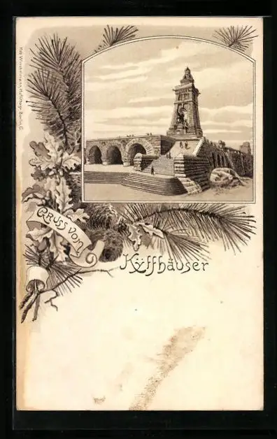 Lithographie Kyffhäuser, Blick aufs Kaiser-Wilhelm Denkmal