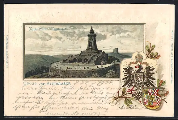 Lithographie Kyffhäuser, Blick aufs Kaiser Wilhelm-Denkmal