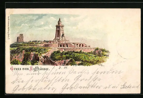 Lithographie Kyffhäuser, Blick zum Denkmal