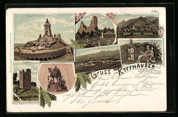 Lithographie Kyffhäuser, Denkmal, Ruine, Rotenburg
