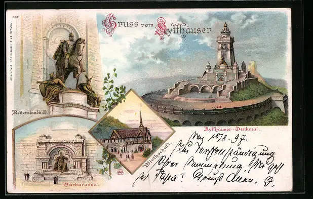 Lithographie Kyffhäuser, Gasthaus, Kyffhäuser-Denkmal, Barbarossa