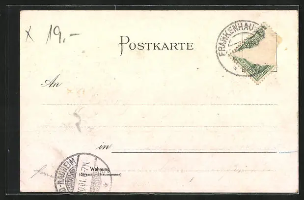 gelaufen 1901, Briefmarke tw. entfernt, Eckknick li. unten, guter Zustand