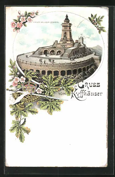 Lithographie Kyffhäuser, Kaiser-Wilhelm-Denkmal