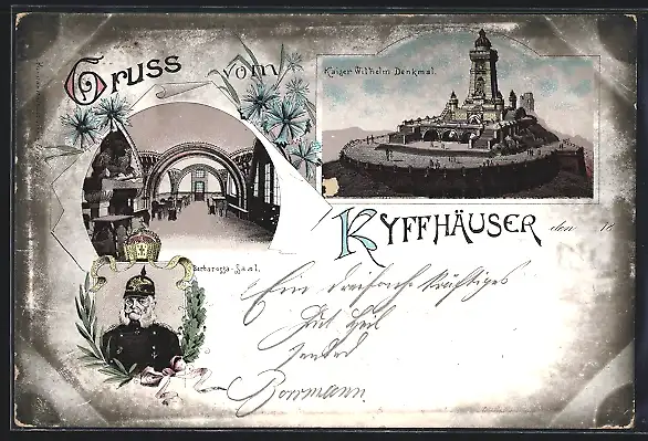 Lithographie Kyffhäuser, Kaiser Wilhelm-Denkmal, Barbarossa-Saal
