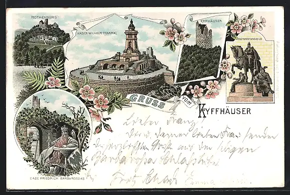 Lithographie Kyffhäuser / Kaiser Wilhelm Denkmal, Reiterstandbild, Rothenburg, Kaiser-Wilhelm-Denkmal