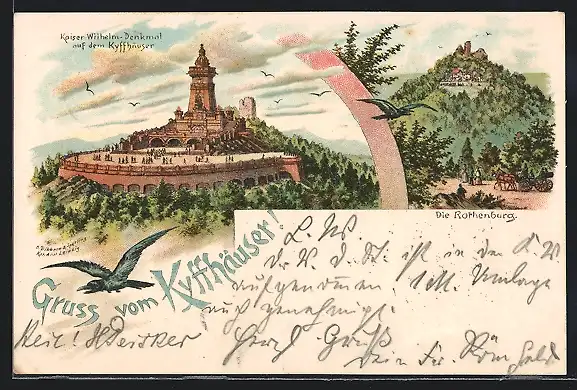 Lithographie Kyffhäuser, Kaiser Wilhelm Denkmal, Rothenburg