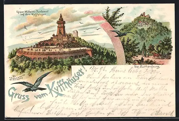 Lithographie Kyffhäuser, Kaiser Wilhelm-Denkmal, Rothenburg