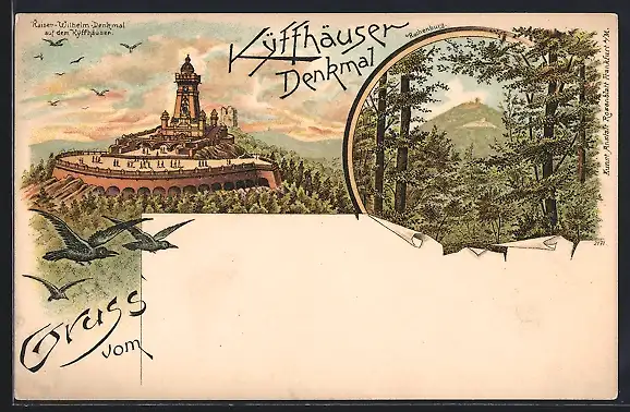 Lithographie Kyffhäuser, Kaiser-Wilhelm-Denkmal, Rothenburg